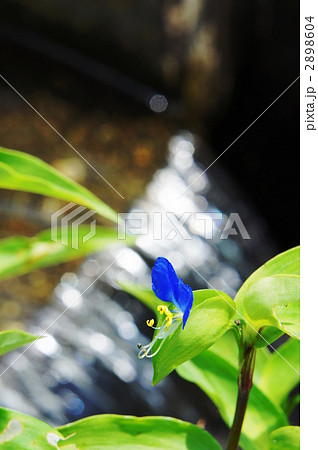 青色のツユクサと緑の葉