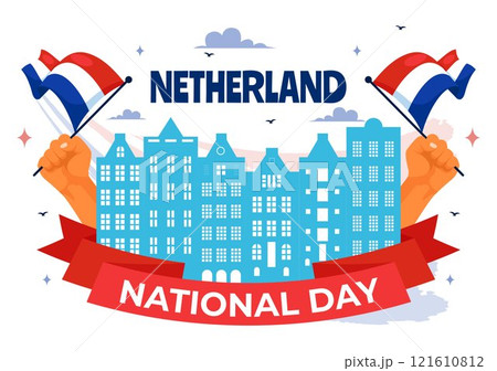 Happy Netherlands National Day Vector Illustration featuring the Netherlands Flag and a Sky Blue Background in a Flat Cartoon Style Design