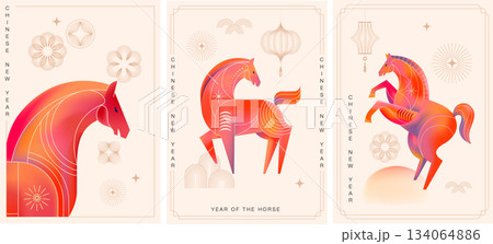Modern geometric vertical banners for Chinese New Year 2026 - Year of the Horse
