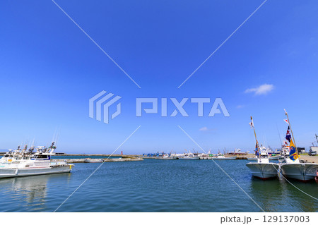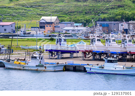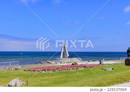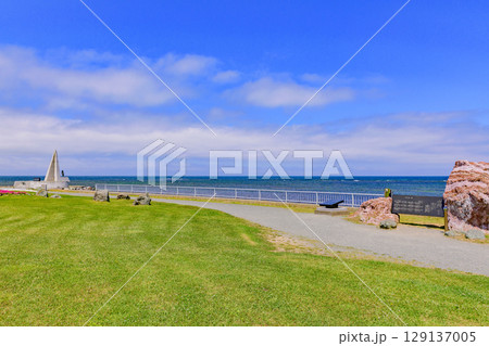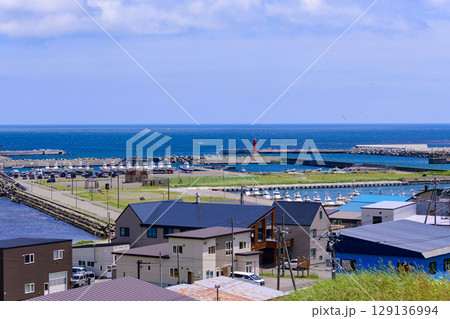 6月の青空広がる宗谷岬と宗谷港の海岸風景