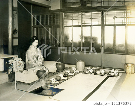 おしとやかに茶を点てる女性 和室と庭園 Generative AI