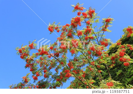 たくさんの赤い実をつけた七竃(ナナカマド)