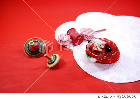 正月イメージ 獅子舞&コマ でんでん太鼓