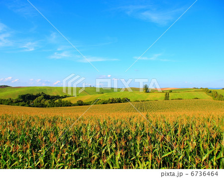 【上富良野町 千望峠からの秋のトウモロコシ畑】
