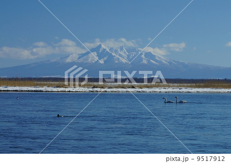 氷が解け始め湖面が広がる小清水町から見た春の濤沸湖 北海道