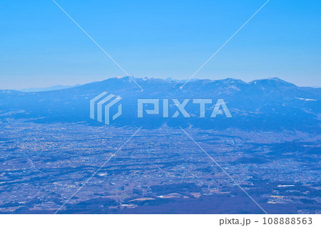 冬の長野県小諸市の浅間外輪山のトーミの頭から南側の佐久盆地方面を見る