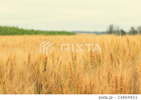 北海道十勝 広大な小麦畑のアップ 黄金に輝く
