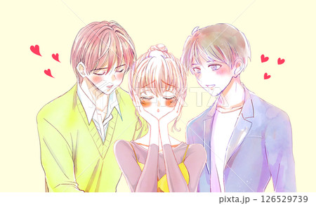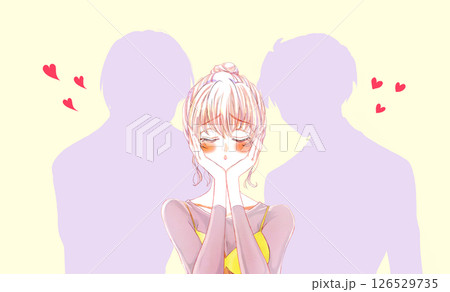2人の男性に好意を持たれる女性 困り顔 シルエット