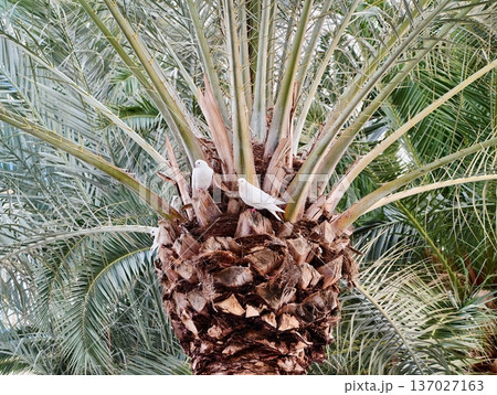 Sunlit scene showcasing bark and fronds, Botanical imagery illustrating organic textures and shadows