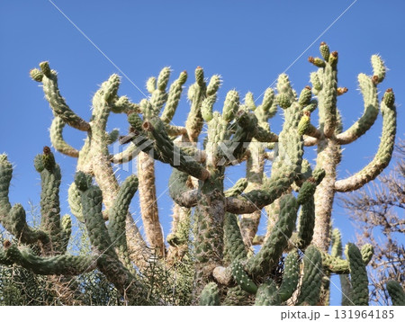 A Remarkable and Unique Cactus Formation Standing Proudly Beneath a Clear Blue Sky