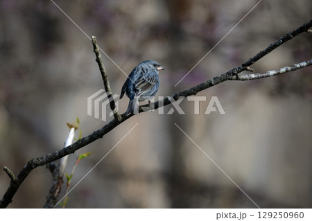 初夏に高原の森で見られる灰色のかわいらしい小鳥、クロジ