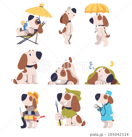 Cute Dog Pet in Different Situation Vector Set