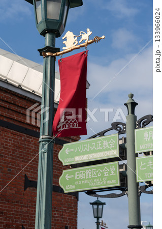 北海道_函館の道路標識(赤レンガ倉庫群)