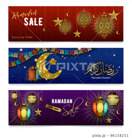 Ramadan Kareem Islamic Greeting Card Frame Background with Hanging Lamp Light Lantern Decoration