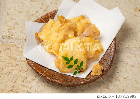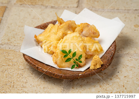 とり天(鶏肉の天ぷら)。日本酒のおつまみイメージ。