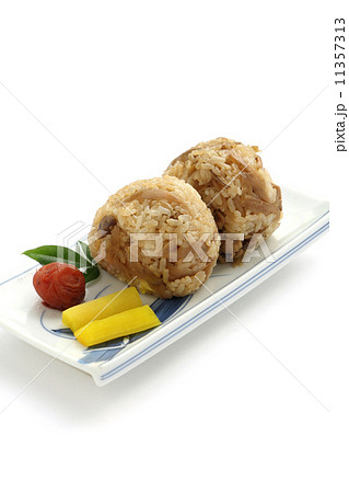 鶏としめじの炊き込みご飯のおにぎり
