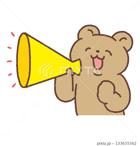 メガホンを持った笑顔のクマ