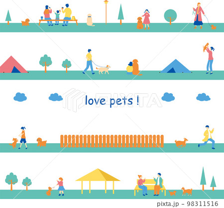 ペットとの暮らしを楽しむ人達 シームレス背景