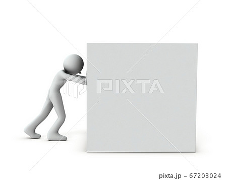大きな箱を押して運ぶキャラクター。3Dレンダリング