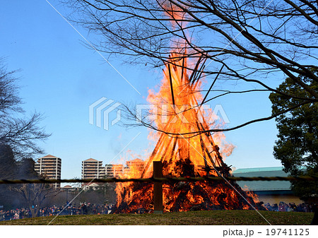 水彩画風 安芸国分寺歴史公園 どんど焼き 竹やぐら 広島県東広島市