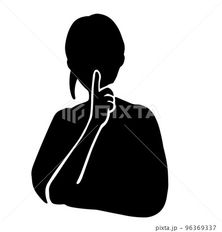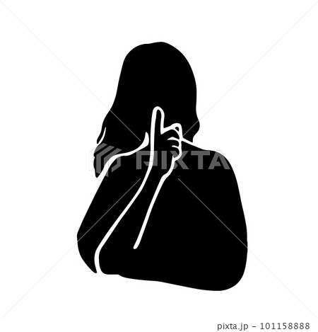 口元に手を当てて内緒のジェスチャーをする女性のシルエットイラスト 黒