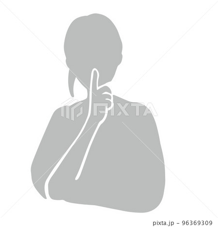 口元に手を当てて内緒のジェスチャーをする女性のシルエットイラスト グレー