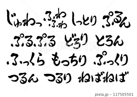 【擬音】食べ物の質感、食感、感触、テクスチャ、見た目の擬態語・オノマトペの手書き文字セット