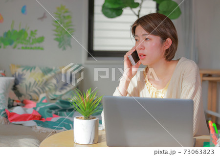 テレワーク_なげやりな表情で話す女性