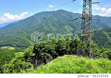 道志山塊の菜畑山 菜畑山・和出村コース 山に聳える佐久間東幹線鉄塔