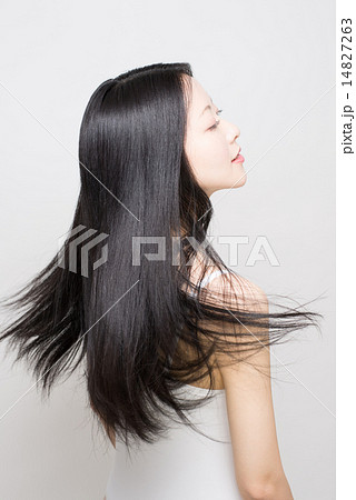 黒髪を風になびかせる女性 ヘアケアイメージ