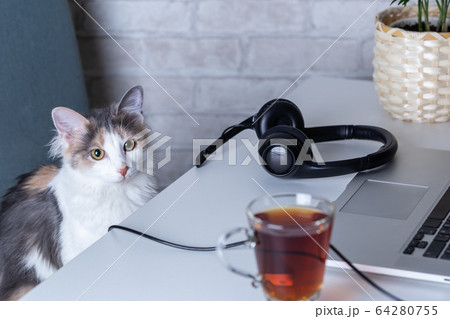 Russia. Kronstadt. April 23, 2022. The cat of the joint breed is an American curl and a long-haired Briton.
