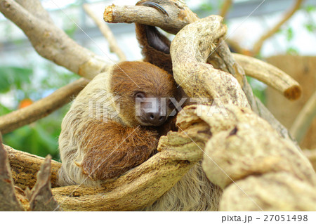 【ナマケモノ】木の枝にぶら下がるフタユビナマケモノ