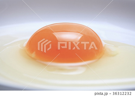 パカッと二つに割れた赤玉の卵と落ちる生卵
