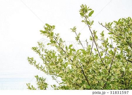 Elaeagnus pungens, thorny olive,spiny oleaster or silverthorn plant branch with flower and leaves