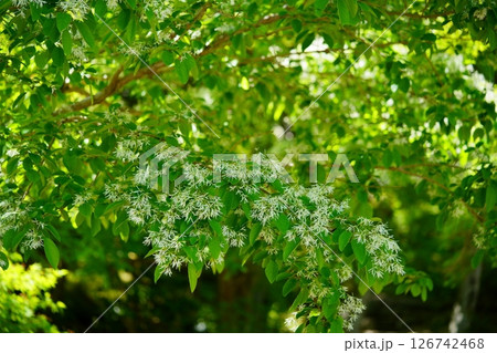 京都和束正法寺参道のナンジャモンジャ(ヒトツバタゴ)の木の白い花1