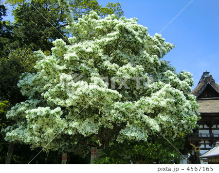 京都和束正法寺参道のナンジャモンジャ(ヒトツバタゴ)の木の白い花1
