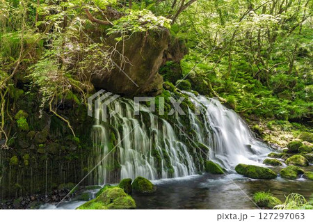 「秋田県」春の元滝伏流水の風景