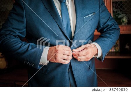 Rolled-up black fashionable men's leather belt with automatic buckle on wood slice on brown background. Male accessory. Front view, vertical photo.