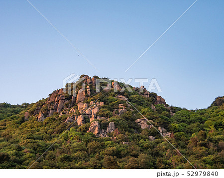 王子ヶ岳 遠望するニコニコ岩と初秋の青空 岡山県玉野市