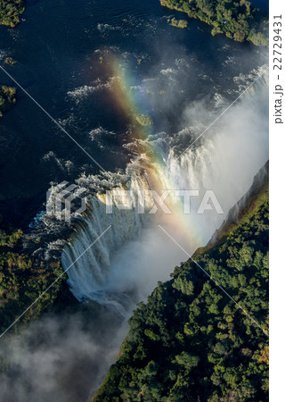 Aerial view of rainbow crossing Victoria Falls