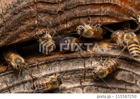 女王バチと働き蜂で社会を組織して食用その他有用な蜜を集めるミツバチ