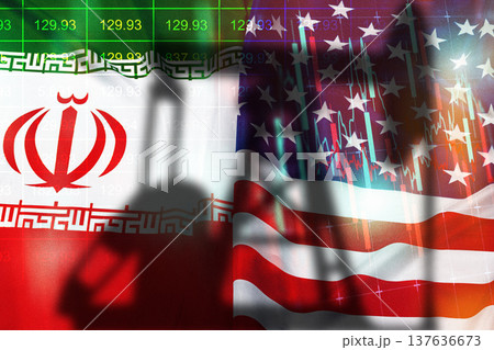 Conflict between Iran and USA shown through broken flags representing tension and division