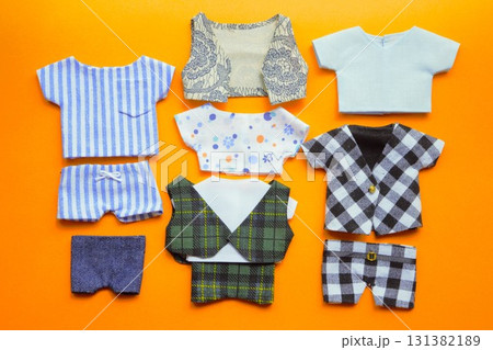 ぬい服 ストライプパジャマ/緑チェックセットアップ/水玉シャツとストライプパンツ