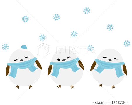 マフラーを巻いてウィンクするシマエナガ
