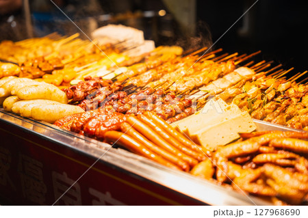台北 寧夏夜市 屋台の串焼き