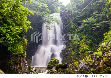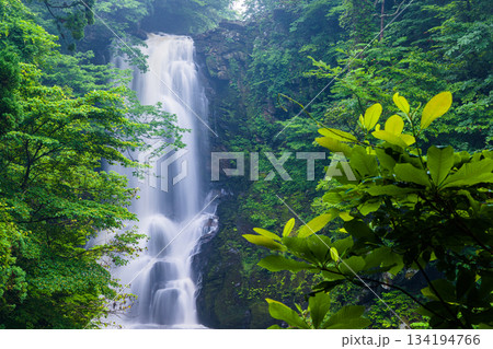 秋田県にかほ市の初夏 新緑の奈曽の白滝 ねがい橋