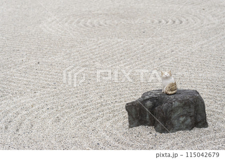 京都 聖護院門跡 宸殿前庭の枯山水に置かれたネコの置き物