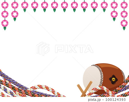 お祭りのフレーム_和太鼓とねじり鉢巻き