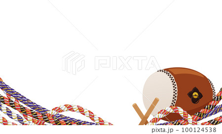 お祭りのフレーム_和太鼓とねじり鉢巻き_16:9