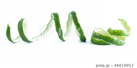 Twisted orange peel isolated on white background with clipping path, package design element, full depth of field